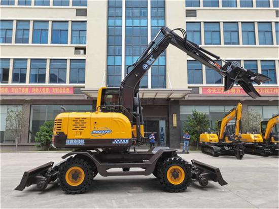 تأتي JG180S مزودة بذراع إمساك معياري وأدوات تثبيت قابلة للتعديل. يتيح هذا التركيب المبتكر فك وتركيب العوارض بسرعة، مع الحد الأدنى من التدخل البشري. يُعد هيكل الحفارة المزوّد بعجلات تحفة هندسية، إذ يوفر مرونة فائقة في مختلف ظروف المسارات. تصميمها القابل للطي ليس عمليًا فحسب، بل ذكي أيضًا، إذ يضمن توافقًا سلسًا مع مقاييس السكك الحديدية القياسية، ويضمن القدرة على العمل بكفاءة في مساحات العمل المحدودة.
